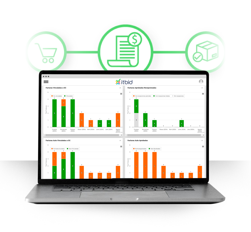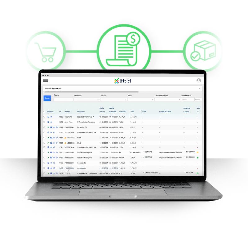 - Integra la plataforma colaborativa de itbid con la contabilidad de tu ERP para unificar la gestión financiera y contable, mejorando la trazabilidad y control del proceso de facturación y cuentas a pagar.